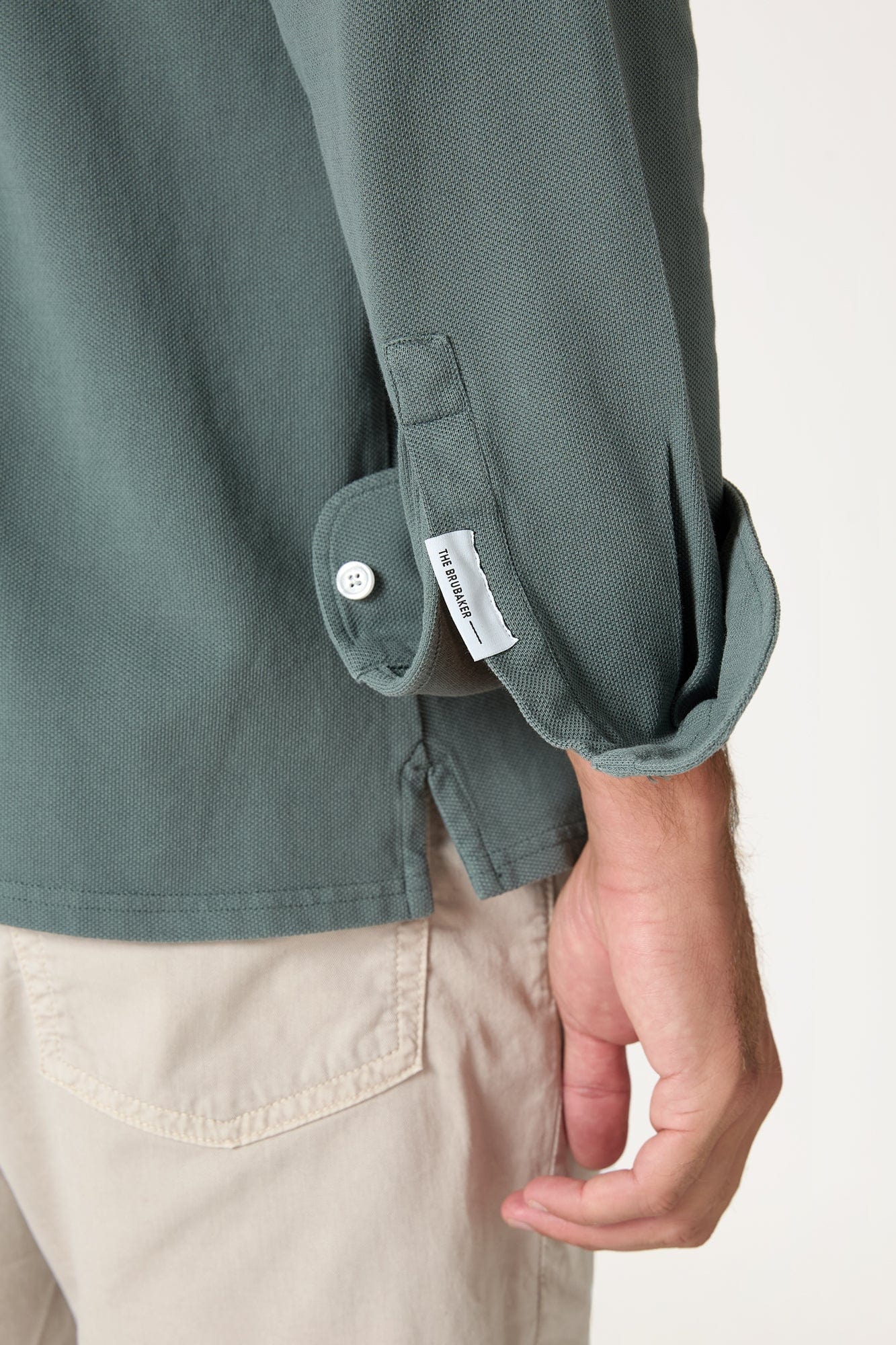 Con cuatro botones frontales y mangas camiseras, este clásico de The Brubaker ofrece comodidad y estilo con un toque distintivo.