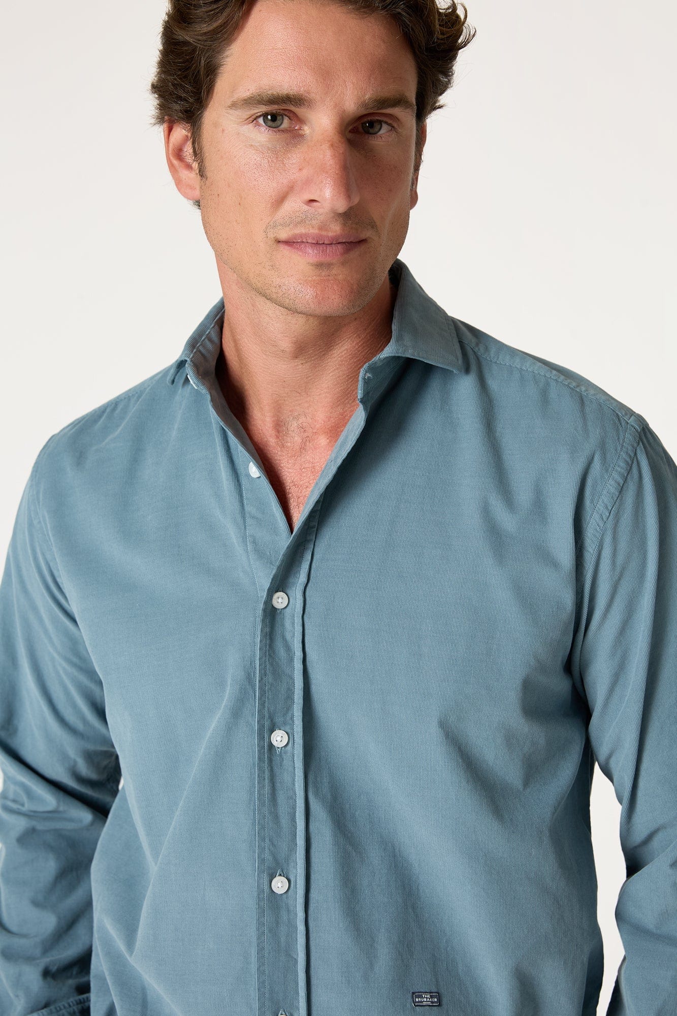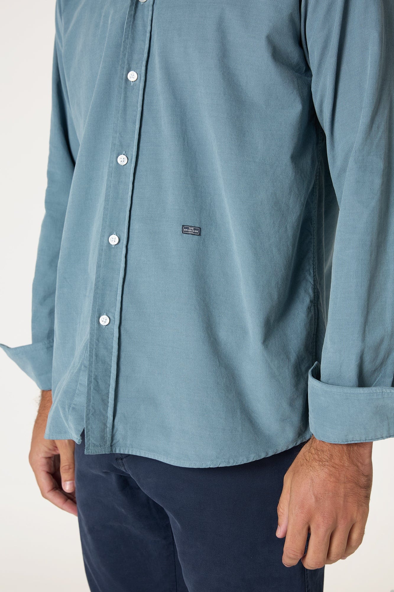 Camisa confeccionada en algodón 100 % con textura de micropana, ideal para los meses más frescos del año.