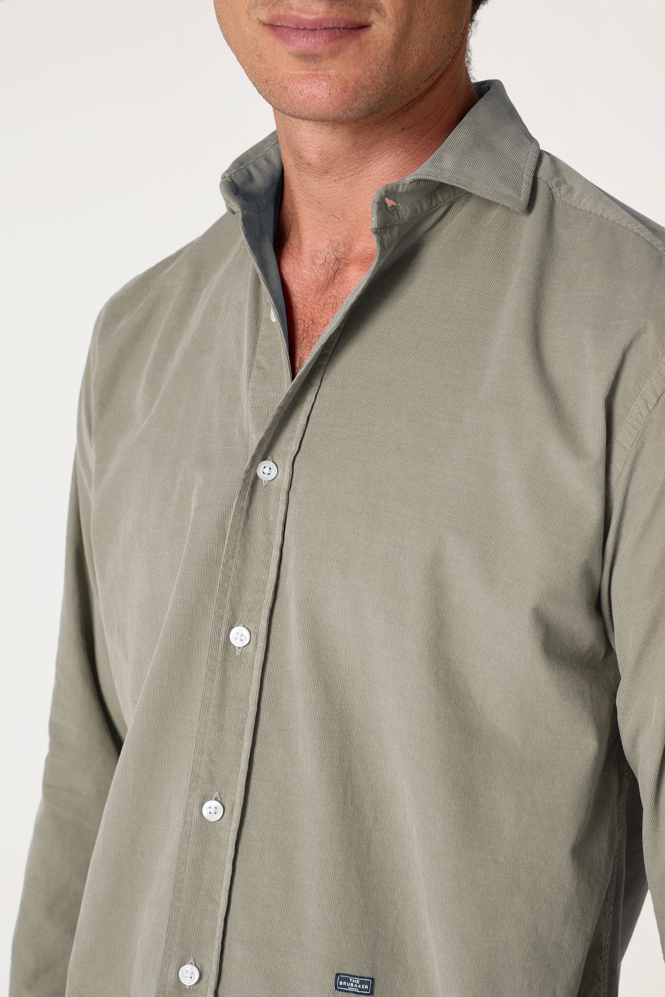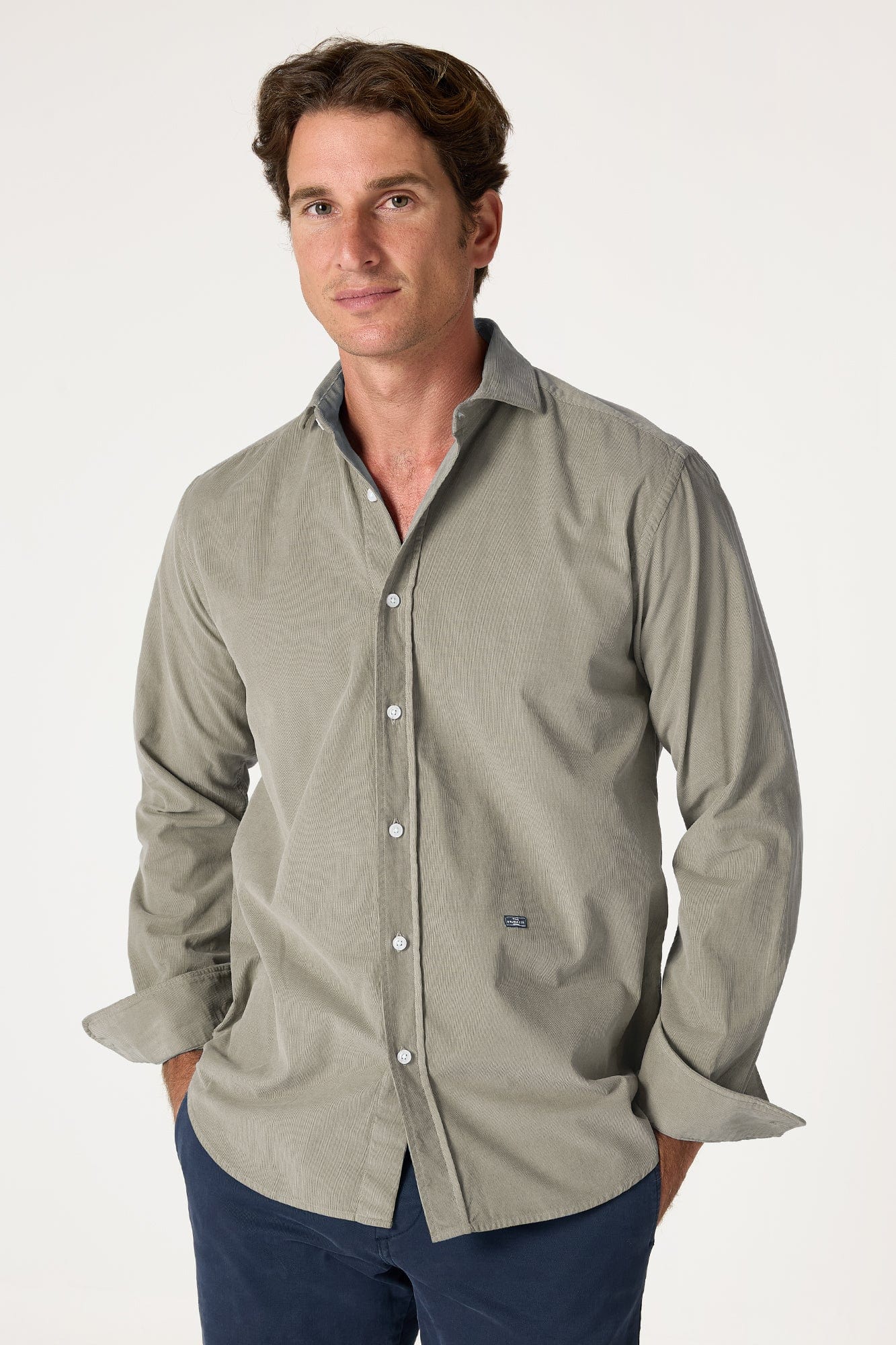 Camisa confeccionada en algodón 100 % con textura de micropana, ideal para los meses más frescos del año.