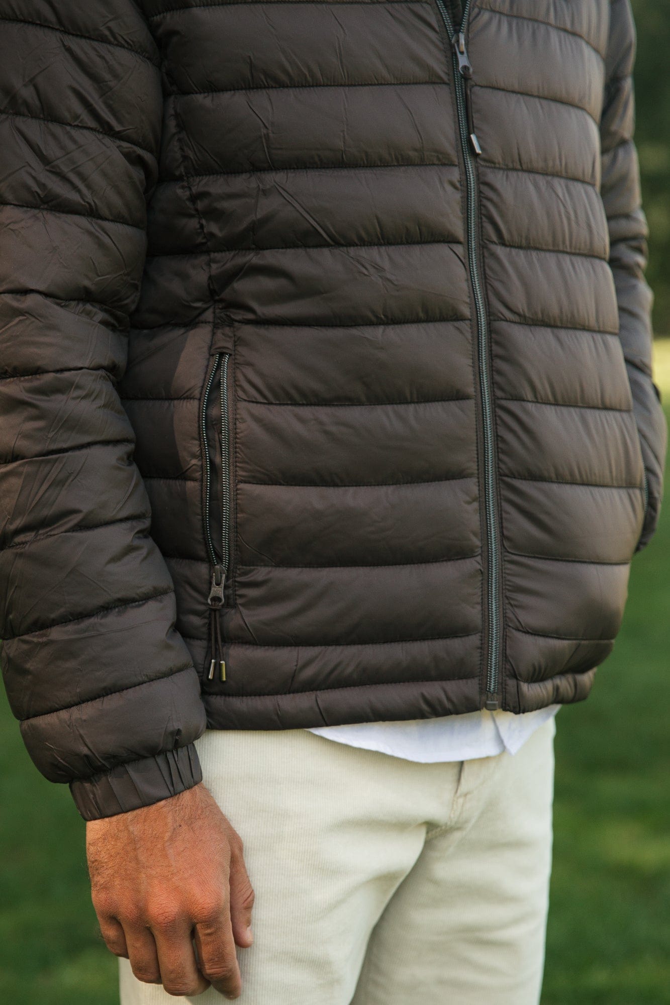 Chaqueta acolchada confeccionada en nylon 100 % impermeable y transpirable, ideal para mantener el confort en cualquier clima.